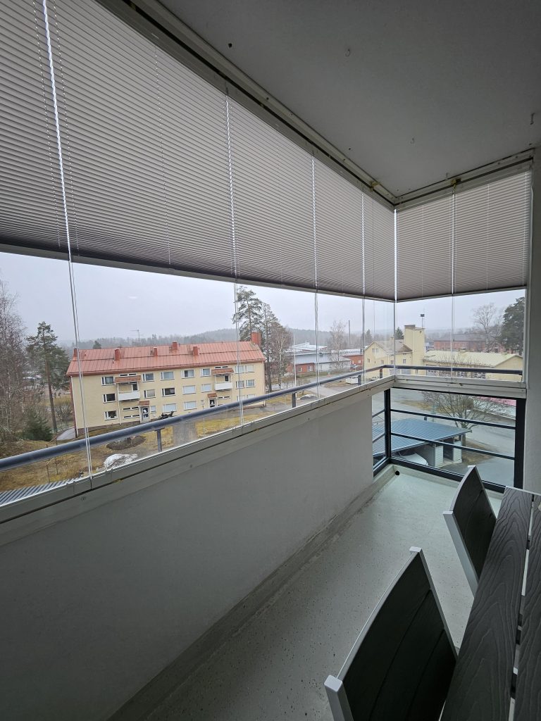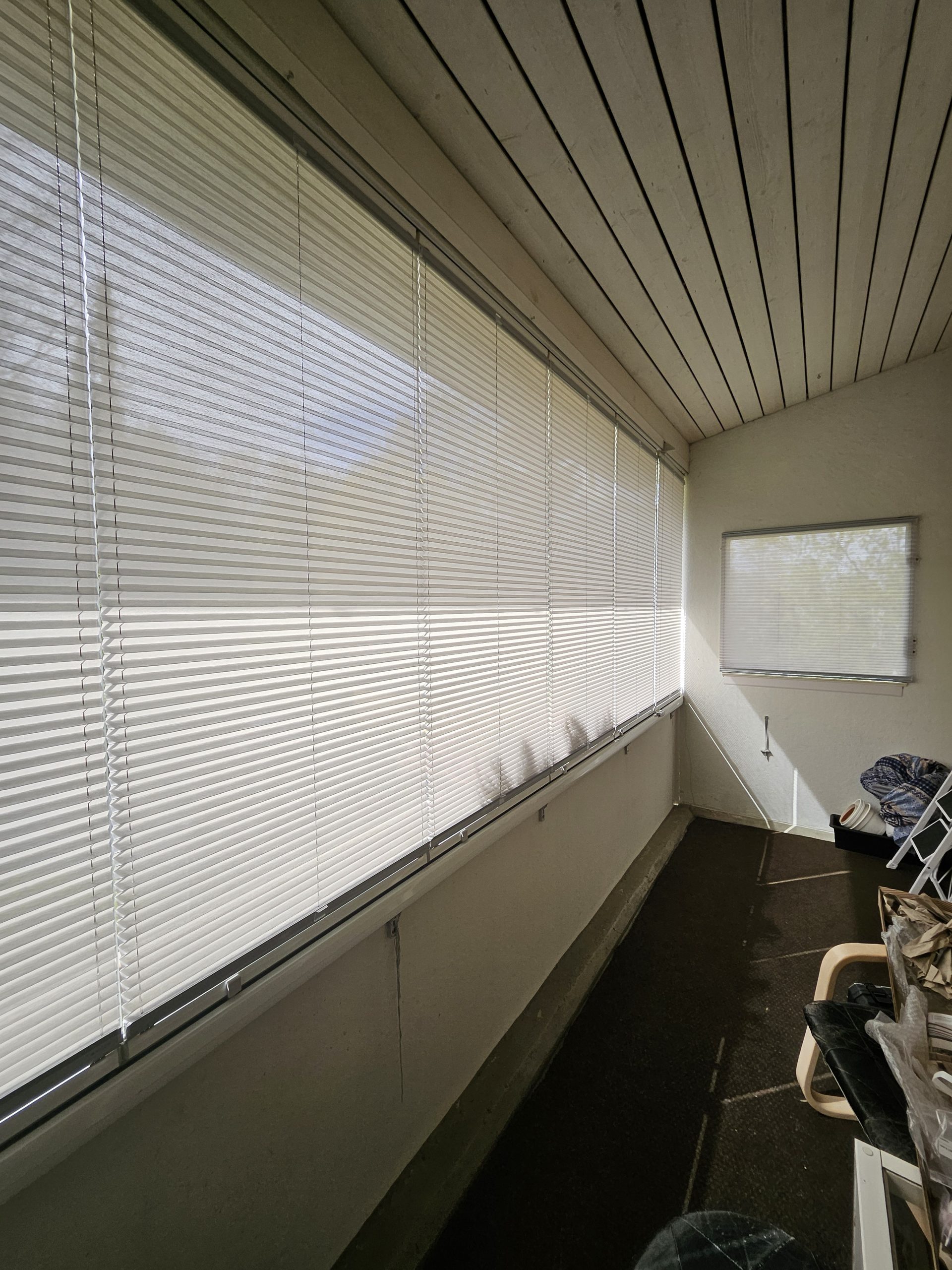 Niiden avulla voit helposti säätää valon määrää ja yksityisyyttä. Helmiäispinnoitettu kangas heijastaa tehokkaasti auringonvaloa ja auttaa pitämään parvekkeen viileämpänä myös kuumina kesäpäivinä.