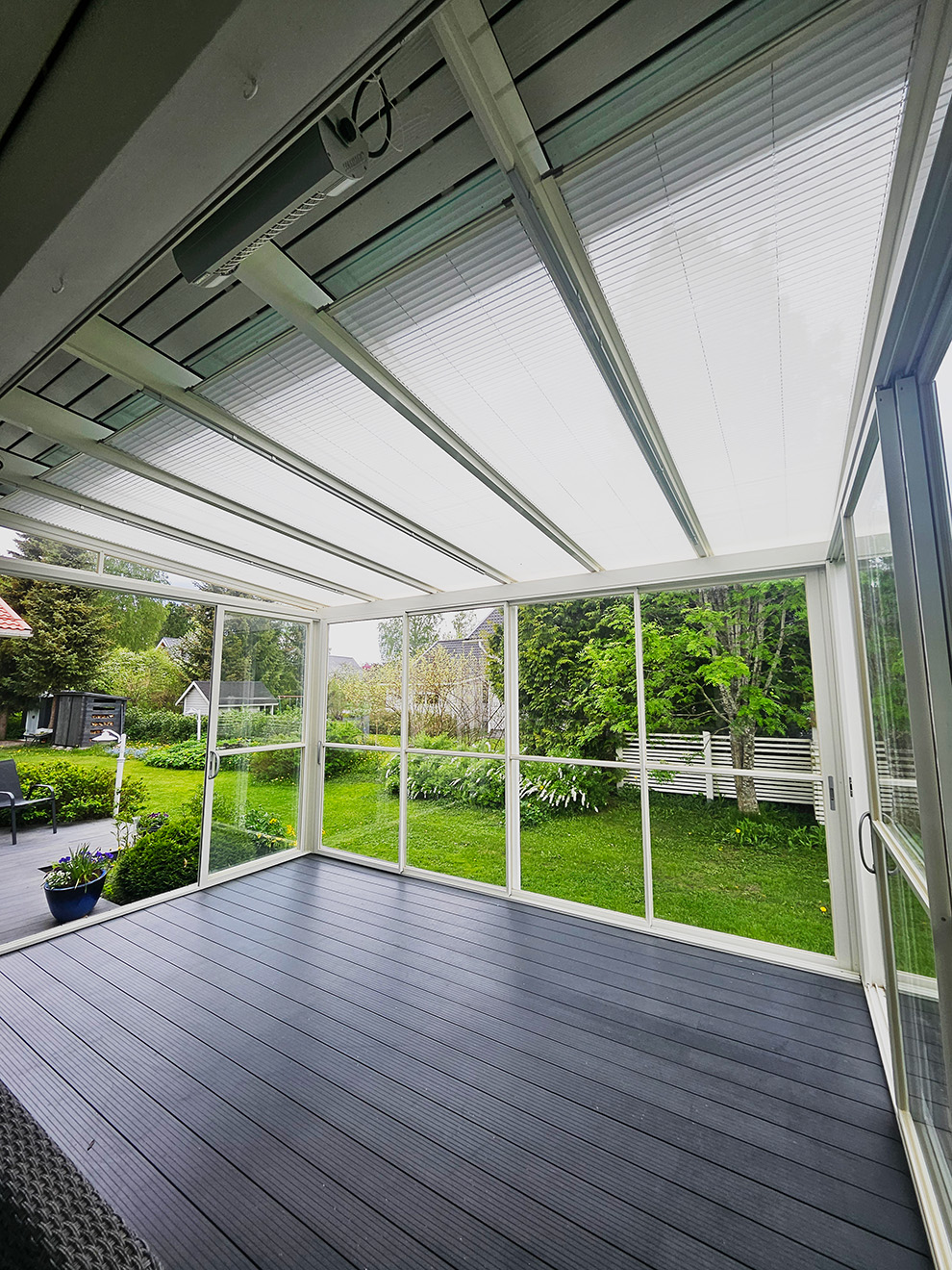 Visor-kattokaihtimet tarjoavat tehokkaan ja tyylikkään ratkaisun kattoikkunoiden ja lasikattojen auringonsuojaan. Mittatilaustyönä valmistetut kaihtimet parantavat asumismukavuutta ja energiatehokkuutta – etenkin kesäkuukausina viilentäen lasitettua tilaa huomattavasti.
